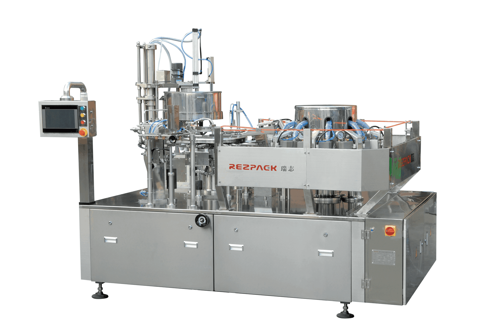 Ø 旋转全自动给袋式真空包装机由两种分离的旋转式机体组成(分别为充填系统和真空系统)
